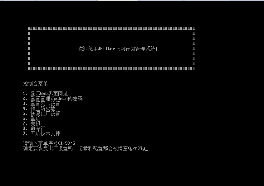 这里还需要输入y(小写)确认一下。Y确认后系统就会恢复出厂设置并且重启设备。