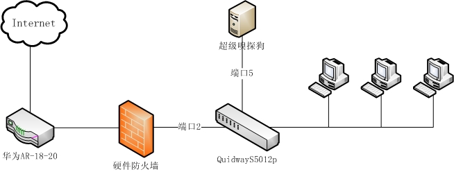 某政府机关光纤接入,采用华为AR-18-20作为宽带路由器,路由器后接硬件防火墙,采用华为QuidwayS5012p作为核心交换机, 如图所示: